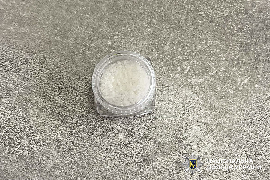Во время задержания полицейские изъяли еще два свертка и емкость с психотропным веществом PVP, что подтверждено экспертизой, а также мобильные телефоны и более пяти тысяч гривен.